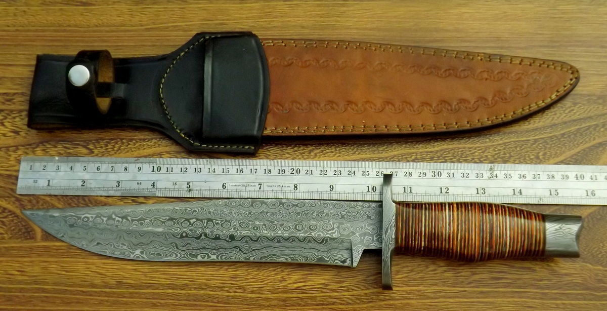15.00 INCHES CUSTOM HAND MADE DAMASCUS STEEL AMAZING HUNTING BOWIE KNIFE
