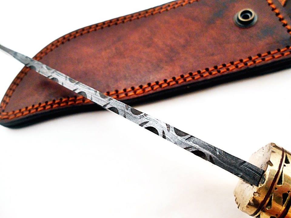 The blade is made by 1095 / 15N20 Alloy Steels (352 Layers) forged by hammer to a beautiful and precise pattern. Damascus Steel has high quality contents to give it an excellent edge and sharp cutting ability. Hardness of the Blade is HRC 57-59. It is hand sharpened to a sharp edge and holds cutting edge after heavy use.