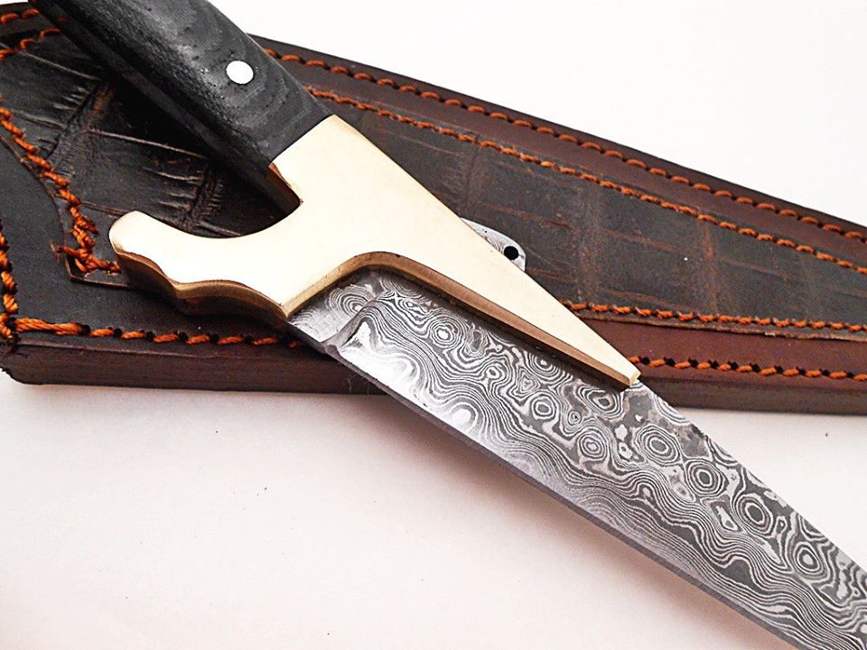 Fabulous Hunting Knife Custom Handmade Damascus Steel Survival Knife Beautiful Black Micarta Handle That’s Make a Beautiful Combination of 12.50 Inches Knife For Outdoor, Camping, Hunting & Survival Purpose With Amazing Handmade Genuine Leather Sheath