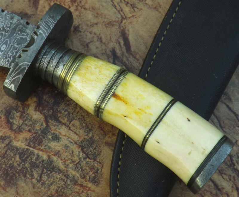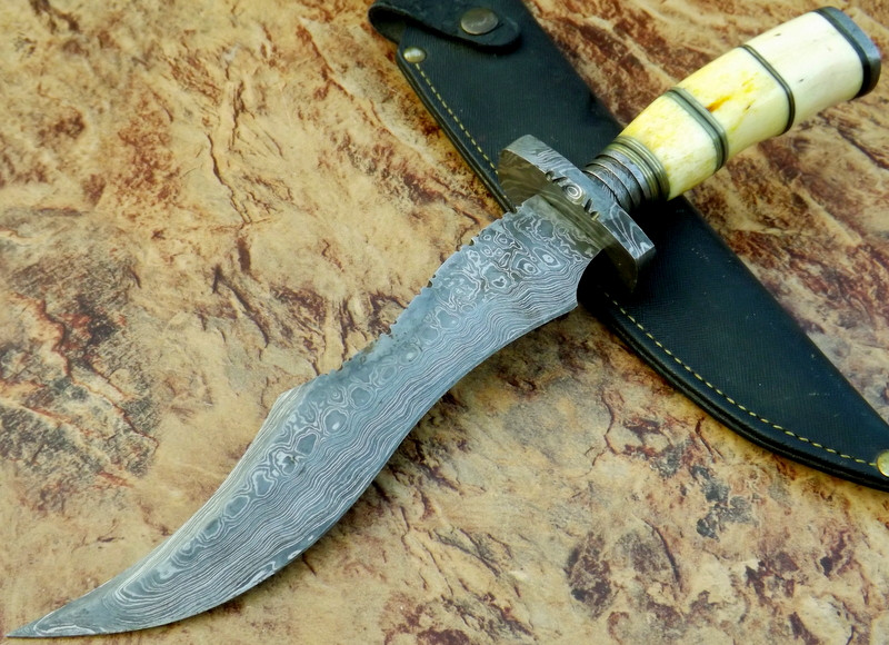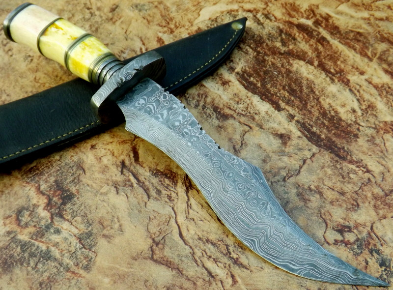 Fantastic Bowie Hunting Knife Custom Handmade Damascus Steel Survival Knife 13.00 Inches With Beautiful Natural Camel Bone Handle