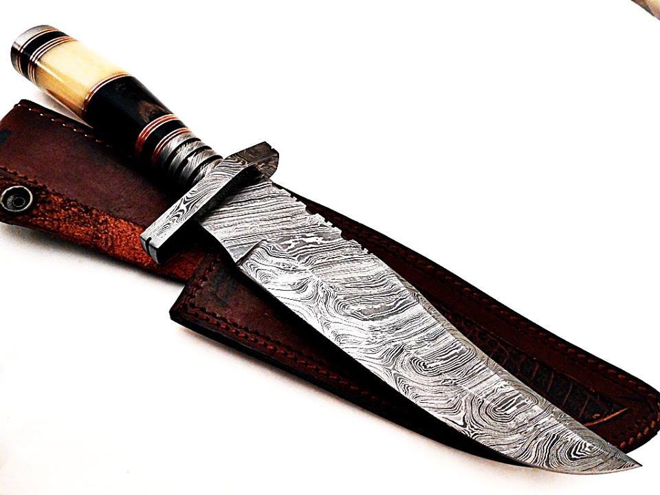 Custom Handmade Damascus Steel Hunting Bowie Knives For Hunting, Outdoors, Camping And Survival Purposes. High Quality Material Used On Handles Like Rose Wood, Oak Wood, Olive Wood, Resin Wood, Resin Sheet, Micarta, Ram Horn, Stag Horn and Damascus Steel Mostly Used On Blade.