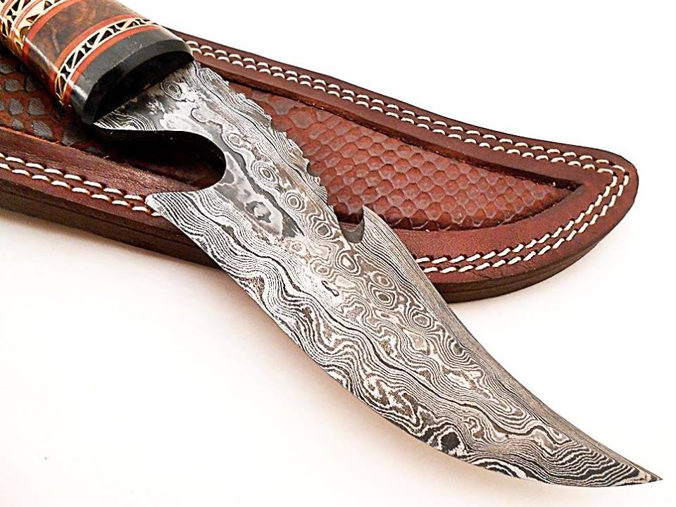 Custom Handmade Damascus Steel Hunting Bowie Knives For Hunting, Outdoors, Camping And Survival Purposes. High Quality Material Used On Handles Like Rose Wood, Oak Wood, Olive Wood, Resin Wood, Resin Sheet, Micarta, Ram Horn, Stag Horn and Damascus Steel Mostly Used On Blade.