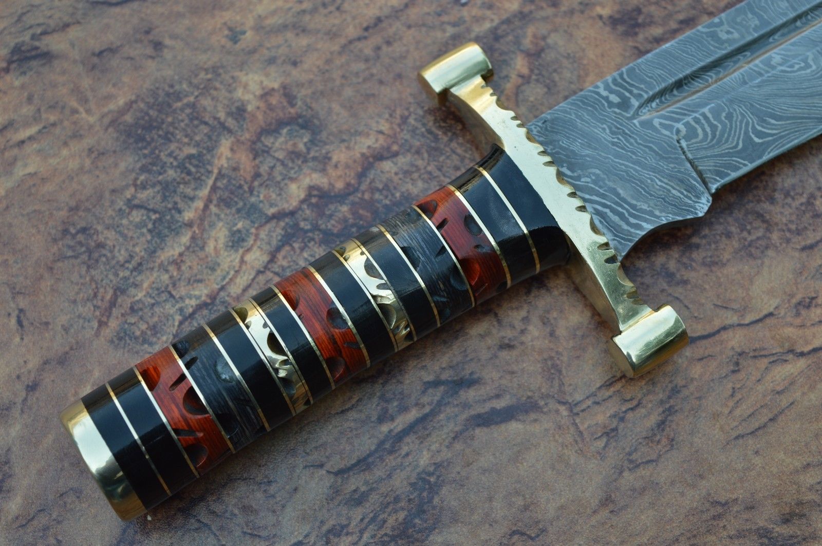 Custom Handmade Damascus Steel Hunting Bowie Knives For Hunting, Outdoors, Camping And Survival Purposes. High Quality Material Used On Handles Like Rose Wood, Oak Wood, Olive Wood, Resin Wood, Resin Sheet, Micarta, Ram Horn, Stag Horn and Damascus Steel Mostly Used On Blade.