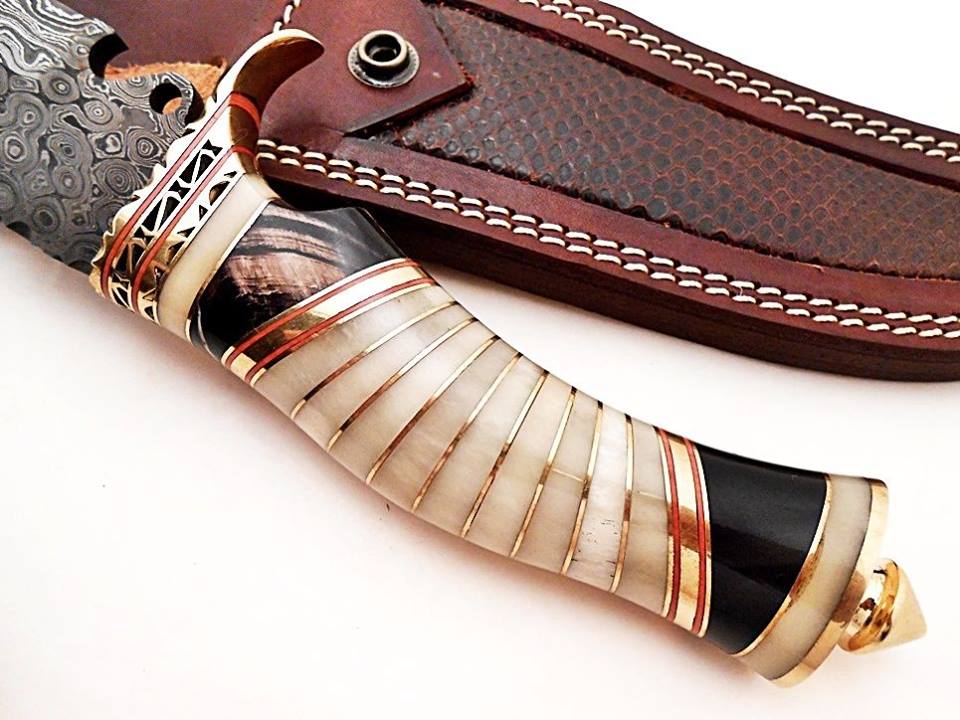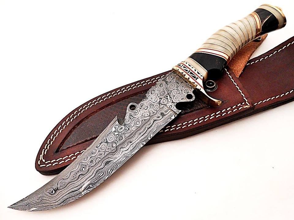 Custom Handmade Damascus Steel Hunting Bowie Knives For Hunting, Outdoors, Camping And Survival Purposes. High Quality Material Used On Handles Like Rose Wood, Oak Wood, Olive Wood, Resin Wood, Resin Sheet, Micarta, Ram Horn, Stag Horn and Damascus Steel Mostly Used On Blade.