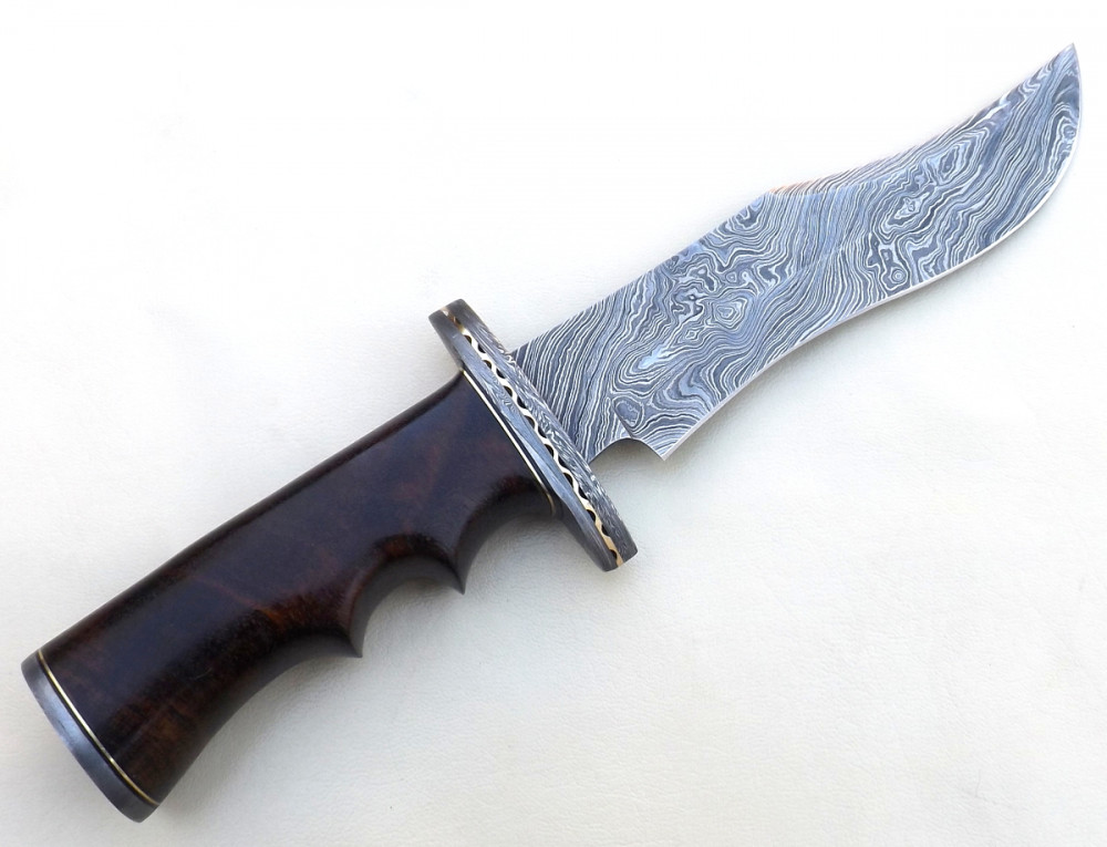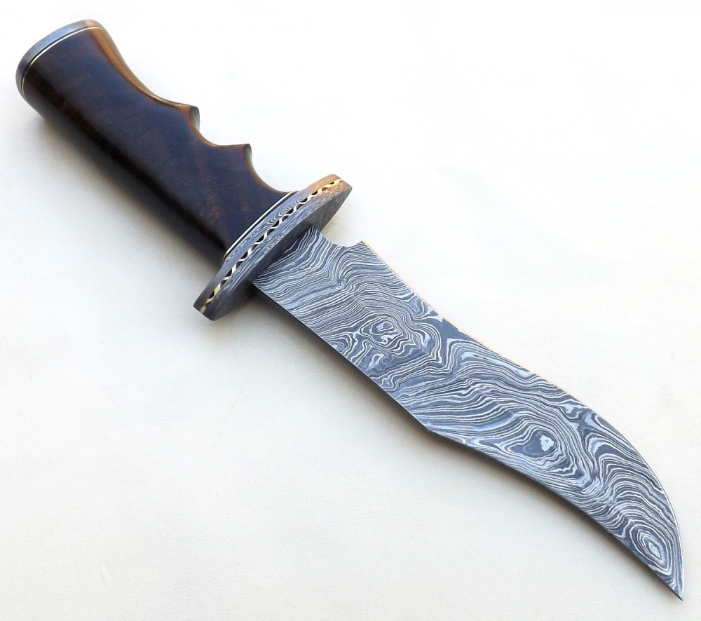 Custom Handmade Damascus Steel Hunting Bowie Knives For Hunting, Outdoors, Camping And Survival Purposes. High Quality Material Used On Handles Like Rose Wood, Oak Wood, Olive Wood, Resin Wood, Resin Sheet, Micarta, Ram Horn, Stag Horn and Damascus Steel Mostly Used On Blade.